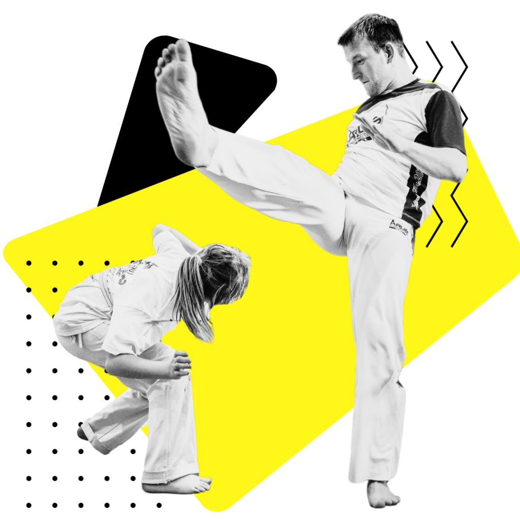 Chcemy nauczyć was kopnięć i akrobacji. Dlatego w trakcie treningów zadbamy o waszą bazę ruchową np. poprawne wykonanie przysiadów czy pompki.
